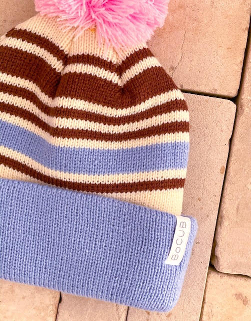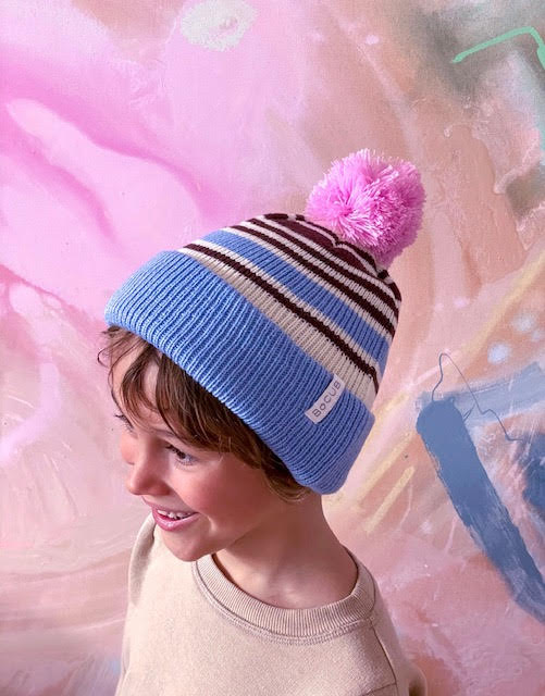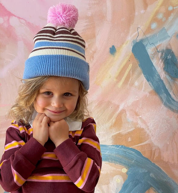 Made with striped, soft, coloured yarn and designed to be snug, cosy and warm. Made for you and your little ones, who are too busy with wild imaginations and make-believe games to care about hair. Marco Polo can be explored alone, with your mini or, have your mini match the 'Marco Polo' rugby.