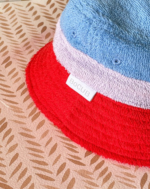 Wick away the summer sweat with a soft absorbent terry bucket. This bucket hat is the 'Cherry on Top' for your summer wardrobe.