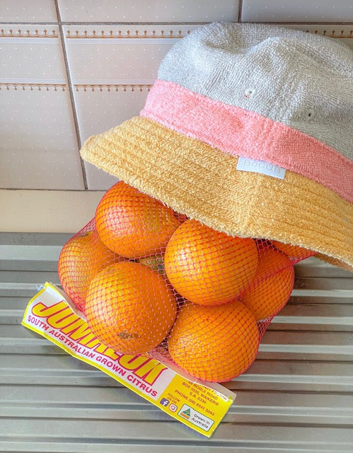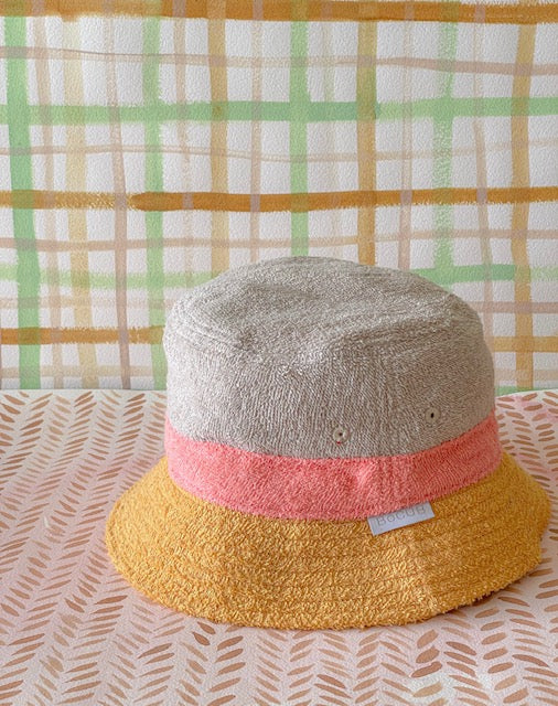 This bucket hat will have you in the sand & "Down to the Earth'. Wick away the summer sweat with a soft absorbent terry bucket.