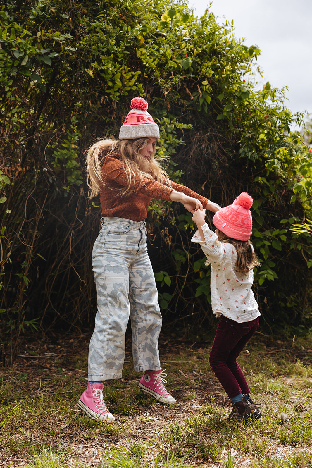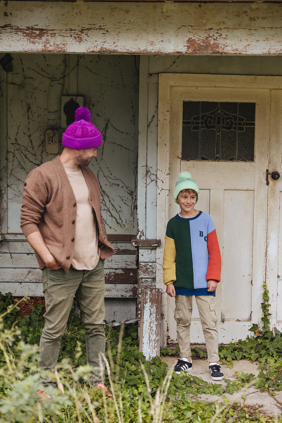 Created from a mix of speckled and dyed yarns, and designed to be snug, cosy and warm. Made for you and your little ones!